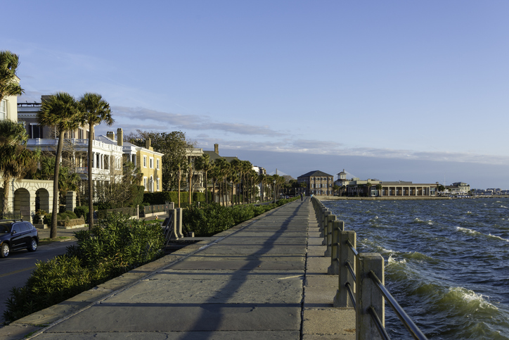 The Battery, a promenade and defensive wall in the historic downtown of Charleston, South Carolina.